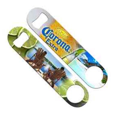 The Mini Speed Openers are smaller-sized clones the well-known stainless steel Speed bottle opener (also commonly called a bar key). Its convenient small length makes it a fun handheld bar tool for opening beer bottles and fits conveniently in your pants pocket or can hang unobtrusively on a key chain or a lanyard. The unique Kolorcoat processing finishes all sides and around the edges of this stainless-steel beer opener with wear-resistant, colorful designs.