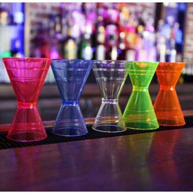 Jiggers are valued bar tools used for virtually all types of bartending situations. Managers love them to keep tabs on inventory and loss, and precise mixologists who strive for perfection appreciate their measurements. These quality plastic jiggers have multiple measurement indications on two sides, and come available in clear or assorted bright neon colors. With Measuring Lines